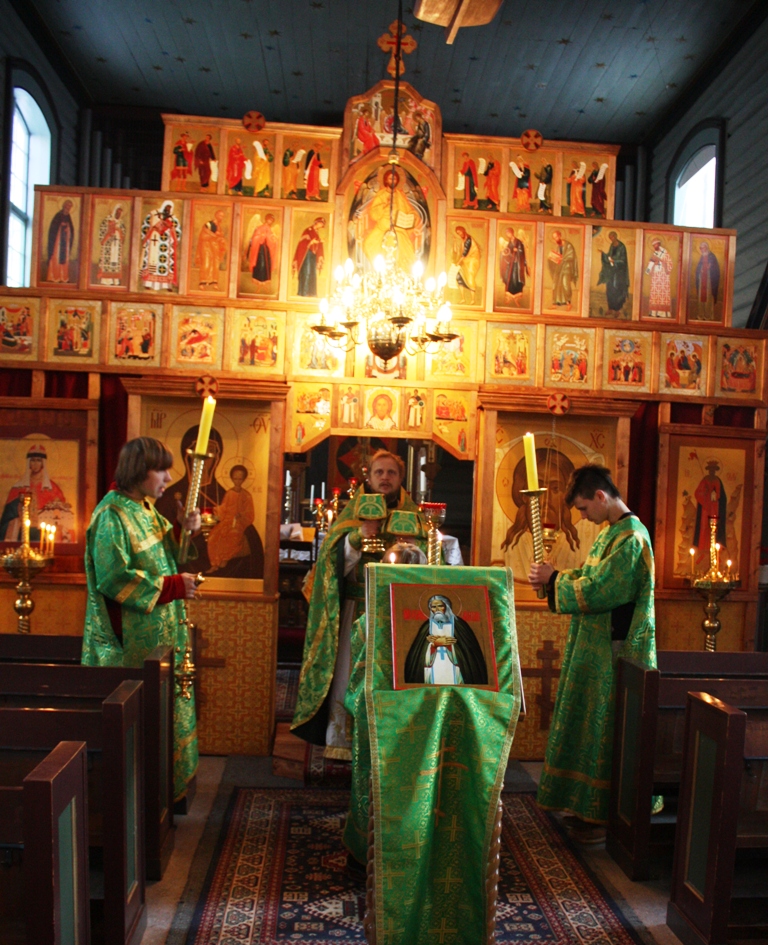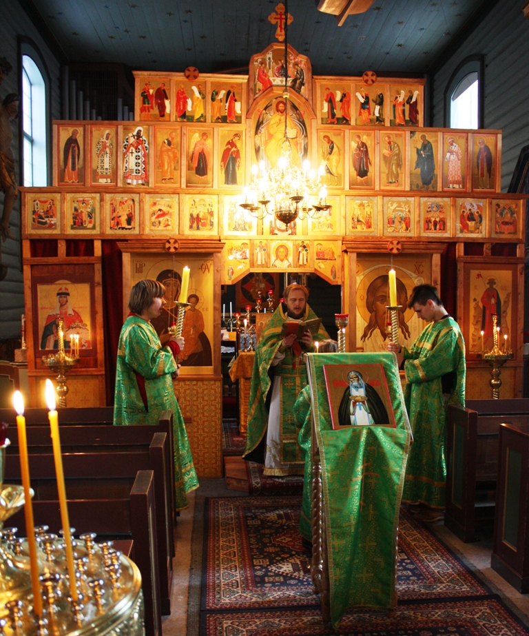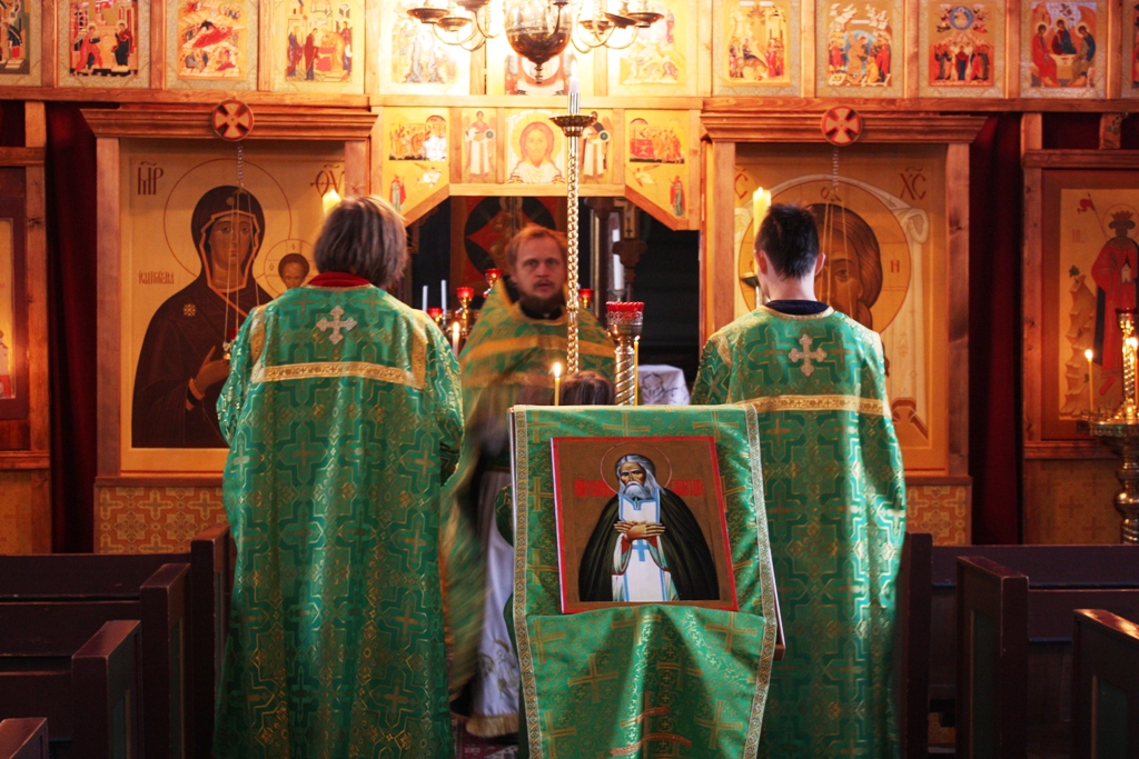 В конце минувшей недели в приходе святой Анны Новгородской в Тронхейме был торжественно отпразднован день памяти и 177-ая годовщина преставления одного из самых любимых на Руси святых — преподобного Серафима Саровского. По окончании вечернего богослужения была освящена новая икона угодника Божия батюшки Серафима. На Божественной Литургии, совершаемой — как обычно в день памяти преподобных — в облачениях зеленого цвета, молилось и причащалось много верующих, детей и взрослых. Преподобный отче Серафиме, моли Бога о нас.