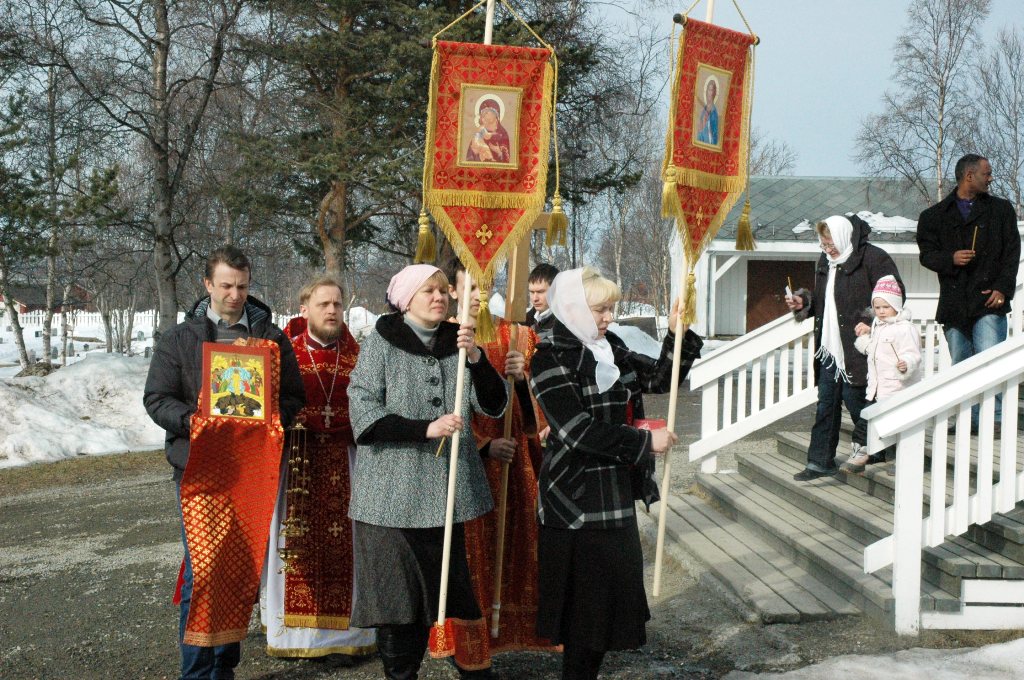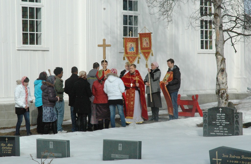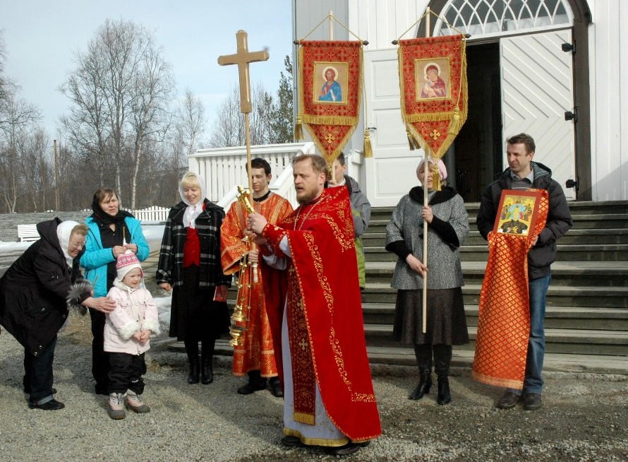 11 апреля, в неделю Антипасхи, в воскресенье, когда воспоминаются явления воскресшего Христа и уверение апостола Фомы, в северо-норвежской общине г.Альты (регион Финнмарк) состоялось праздничное пасхальное богослужение. Божественная Литургия, возглавляемая приходским священником из Тронхейма, вновь собрала под своды белоснежной Алта кирке сонм православных верующих города, большинство из которых причастилось Святых Христовых Тайн. Затем священник и прихожане с крестом, хоругвями и иконой Пасхи под молитвенное пение «Христос воскресе из мертвых» совершили крестный ход вокруг главной церкви города. По окончании молитвенного шествия в церкви была освящена пасхальная снедь и куличи, а светлый день завершился неизменной общей трапезой и общением с батюшкой.