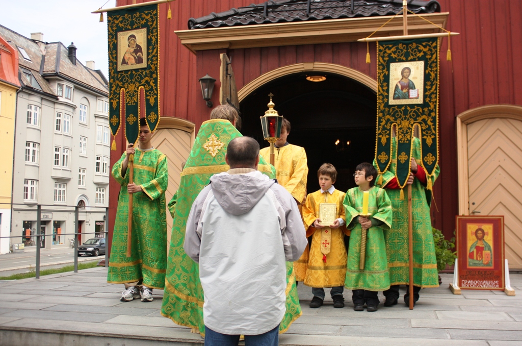 Царю Небесный, Утешителю, Душе Истины, Иже везде сый и вся исполняяй, Сокровище благих и Жизнеподателю, прииди и вселися в ны и очисти ны от всякия скверны и спаси, Блаже, души наша /молитва Святому Духу/. В Духов день в общине Тронхейма состоялись богослужения праздника Святой Пятидесятницы, собравшие, подобно ученикам Христовым, множество православных верующих. На Всенощном бдении в украшенном зелеными ветвями храме были освящены хлеб и вода, которой под пение «Царю Небесный» были щедро окроплены прихожане. По окончании Божественной литургии крестным ходом верующие с молитвой и под колокольный звон прошли вокруг храма, являя всему миру великую радость о сошедшем и пребывающем в Церкви Святом Духе, Жизнеподателе. День завершился общей праздничной трапезой.