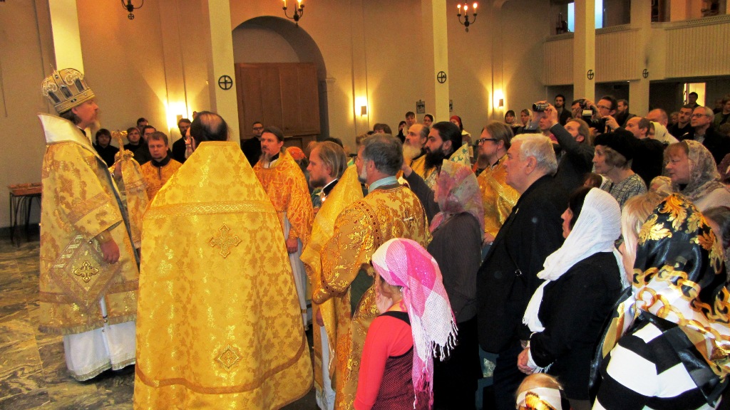 Ввиду большого числа верующих, которых не смог бы вместить Сергиевский храм, Божественная литургия 8 октября совершалась в католической церкви Благовещения Пресвятой Богородицы. Архиепископу Марку сослужили священники, исполняющие послушания в приходах Норвегии, Дании, Исландии, Финляндии и севера Швеции.