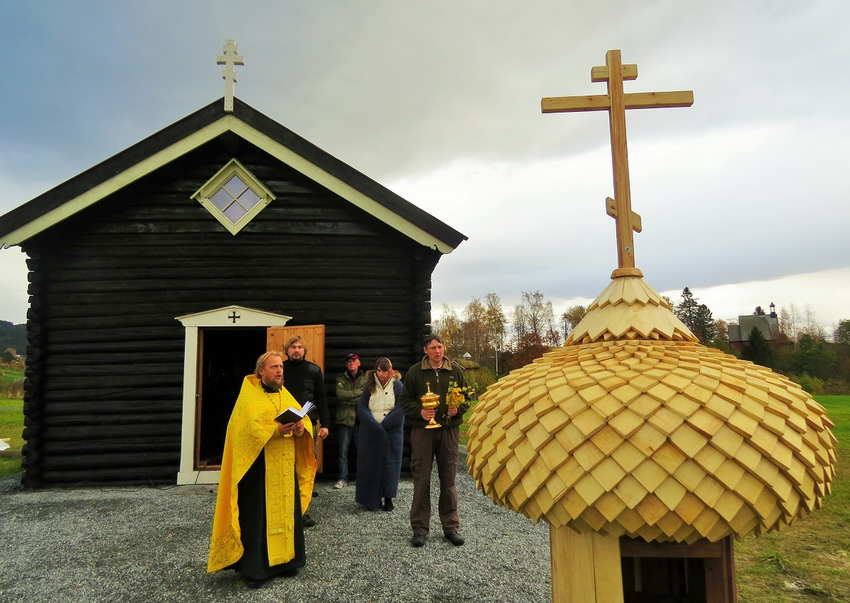 В воскресенье 12 октября освящен крест и купол для православного храма святого Олава в Стиклестаде.