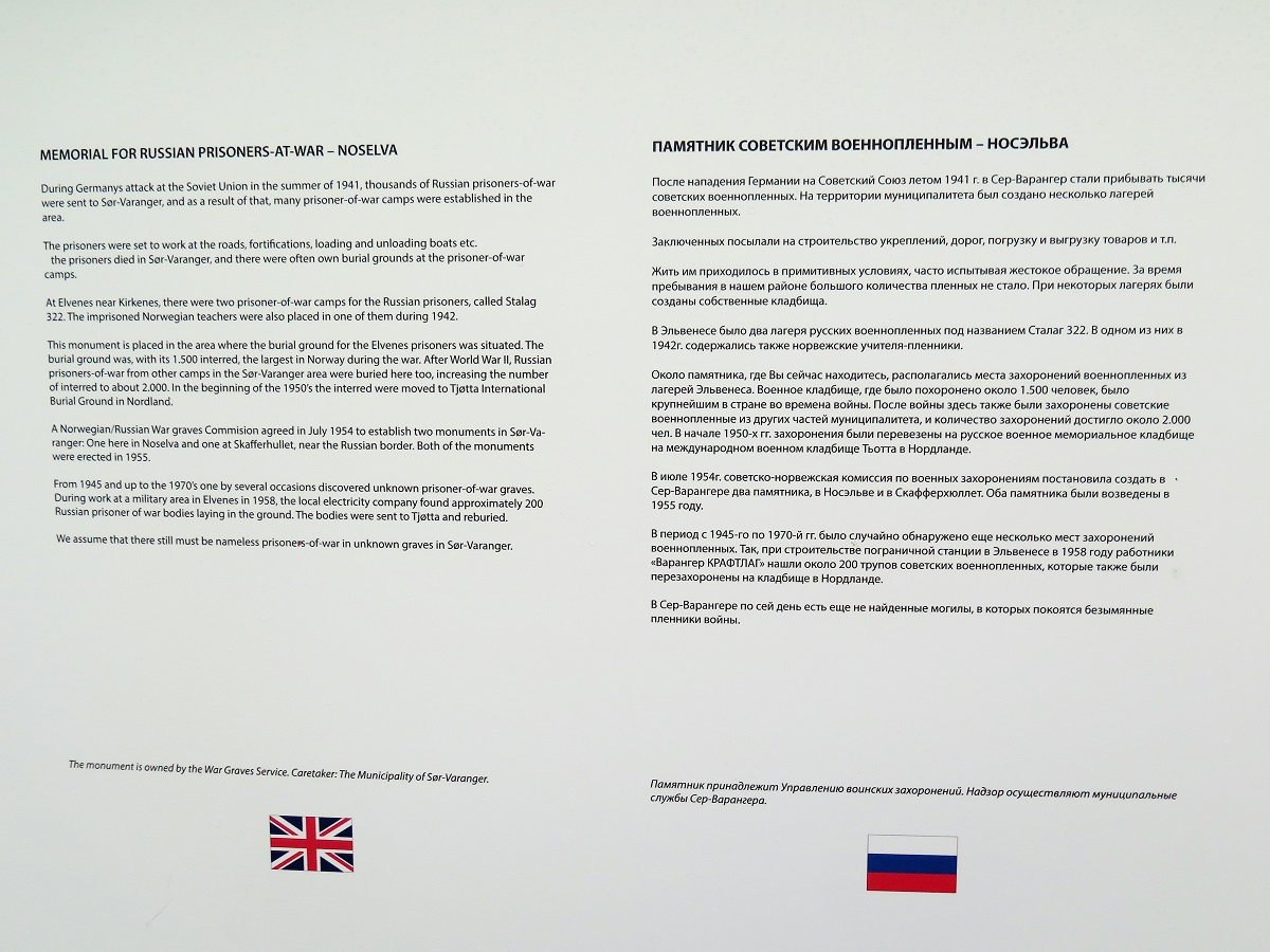 Тысячи советских солдат геройски полегли при освобождении Восточного Финнмарка в октябре 1944 года, где они и были впоследствии погребены в братских могилах. Именно здесь и возносилась в эти дни «Вечная память» всем «за веру и Отечество жизнь свою отдавшим», как в самом Киркенесе, так и возле Нейдена, Носельвы, Бьорневатна.