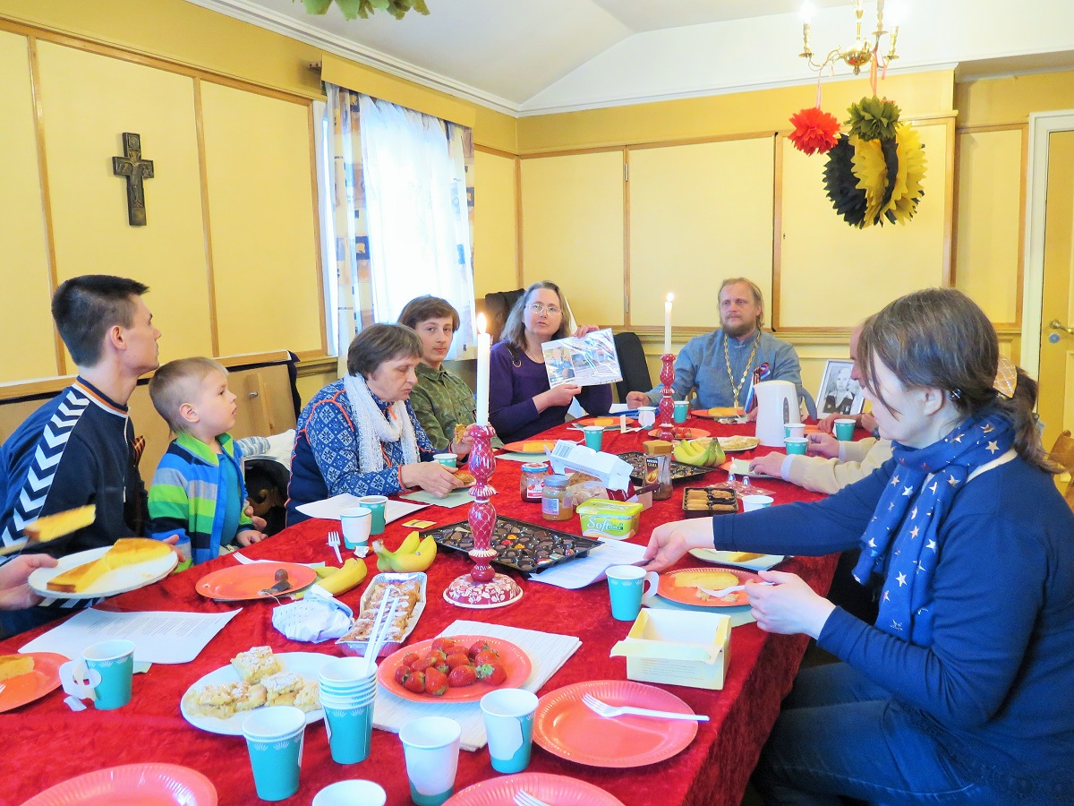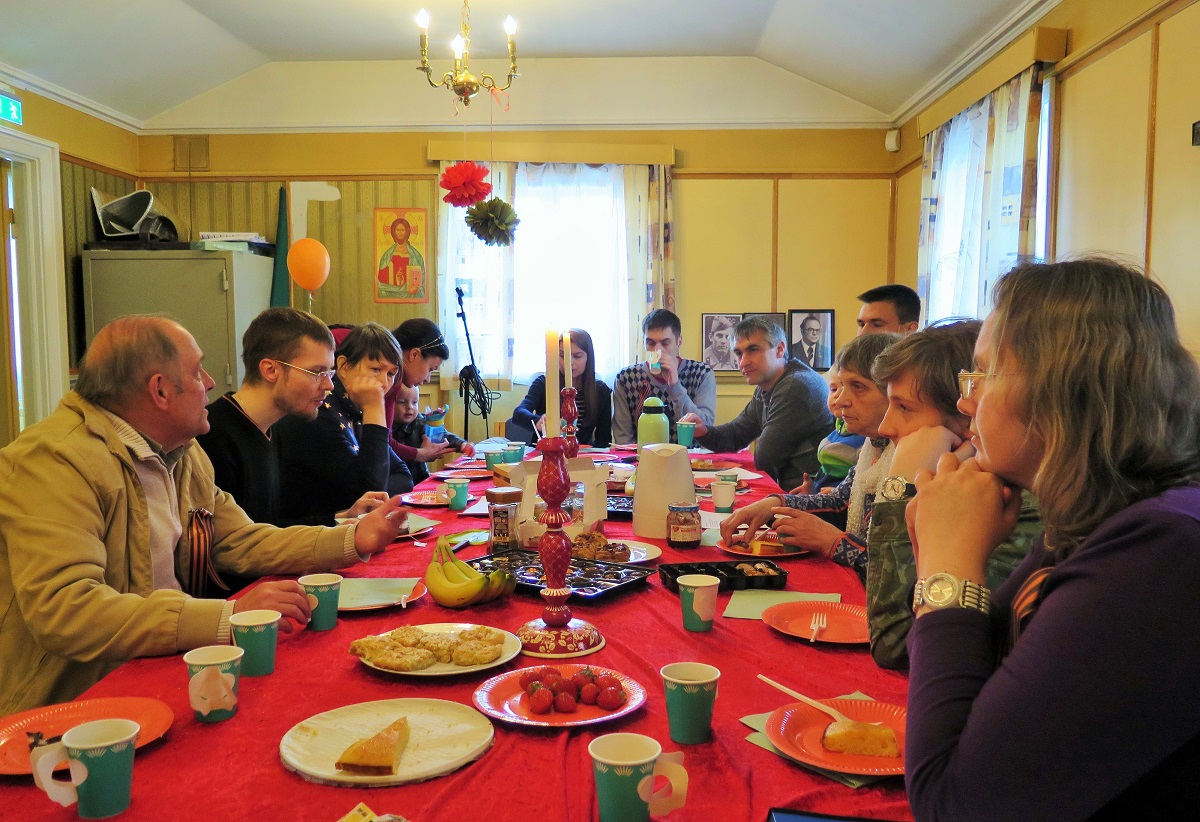 По окончании прихожане собрались в приходском зале храма Бакке кирке, где за общей праздничной трапезой продолжили общение о своих дедах и прадедах и других участниках Великой Отечественной войны.