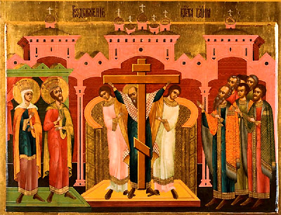 Вознесыйся на Крест волею, тезоименитому Твоему новому жительству, щедроты Твоя даруй, Христе Боже, возвесели силою Твоею верныя люди Твоя, победы дая нам на супостаты, пособие имущим Твое оружие мира, непобедимую победу.