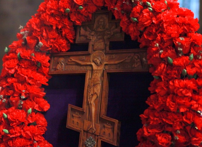 Величаем Тя, Живодавче Христе, и чтим Крест Твой святый, имже нас спасл еси от работы вражия.