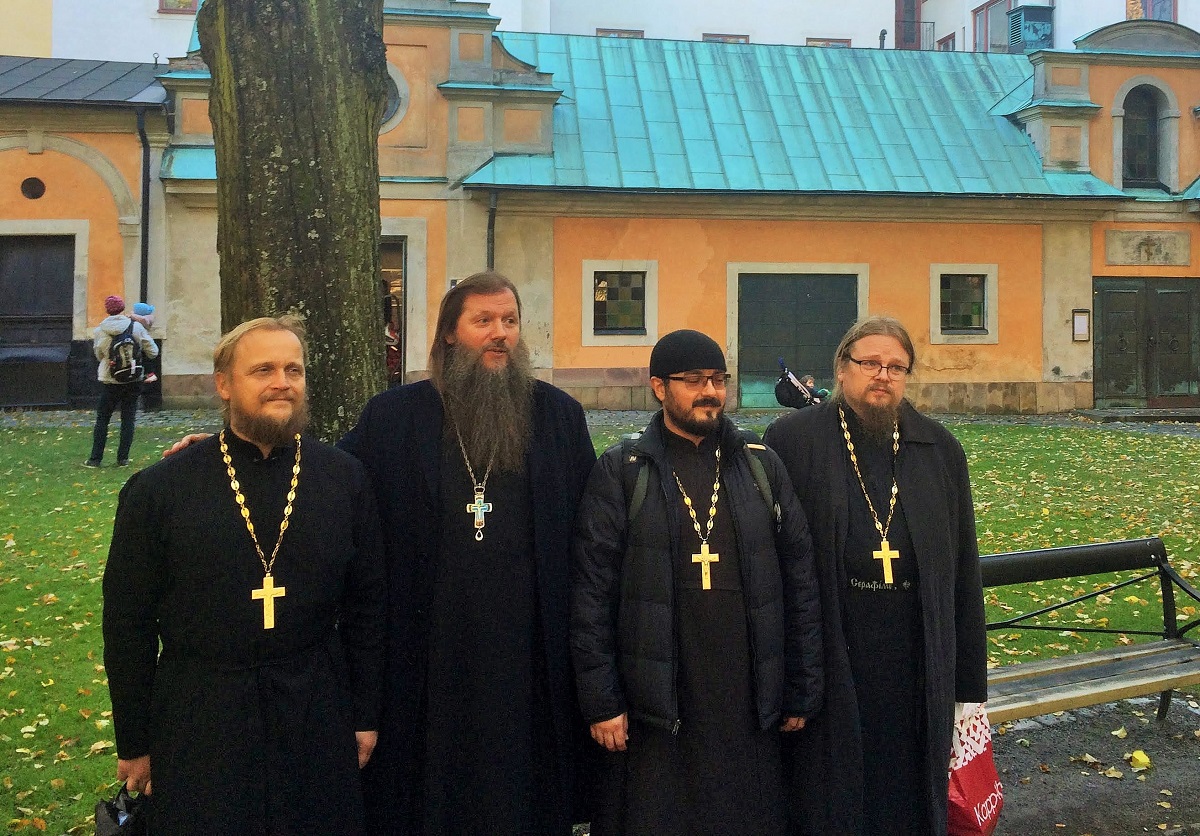 Отец Артемий Владимиров и скандинавское духовенство у стен храма