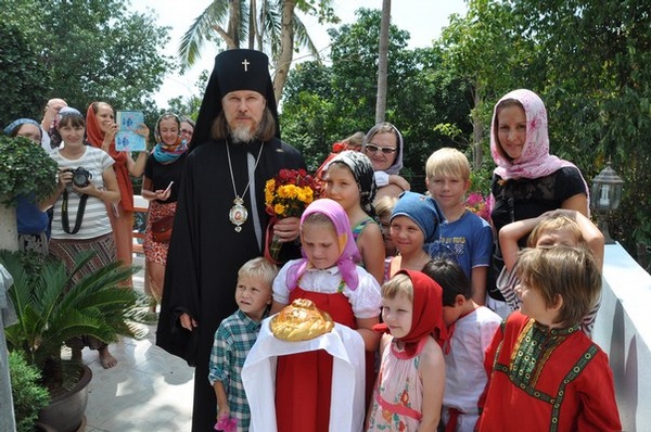 Архиепископ Егорьевский Марк (ныне — митрополит Рязанский) и дети прихожан