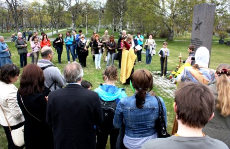 Панихида в рамках официальной программы в связи с Днем Победы (Frigjøringsdagen) у памятника на расстрельном месте бывшего немецкого концлагеря Фалстад.