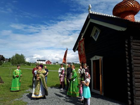 Великий праздник памяти Всех святых, от века просиявших, был светло встречен нами в воскресенье 11 июня совершением Божественной литургии в приходском храме святого Олафа Норвежского в Стиклестаде.