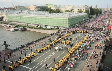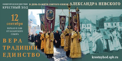 По окончании богослужения архиереи и духовенство возглавили торжественное шествие по Невскому проспекту от Казанского собора к площади Александра Невского.