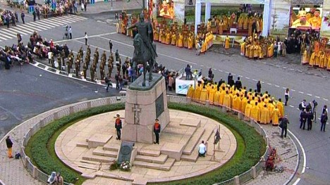 По окончании молебна владыка Варсонофий поздравил собравшихся с праздником и произнес проповедь. «Этот праздник соединяет историю и современность, наши земные заботы с вечными ценностями», — сказал управляющий делами Московской Патриархии.