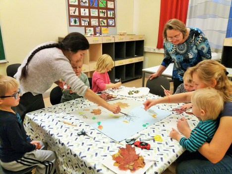 Был просмотрен православный мультфильм о сотворении мира, а затем детвора, сосредоточив свои творческие усилия вместе с родителями, под руководством Елены Хаммари увлеченно и прилежно создала дивную картину осенней природы.