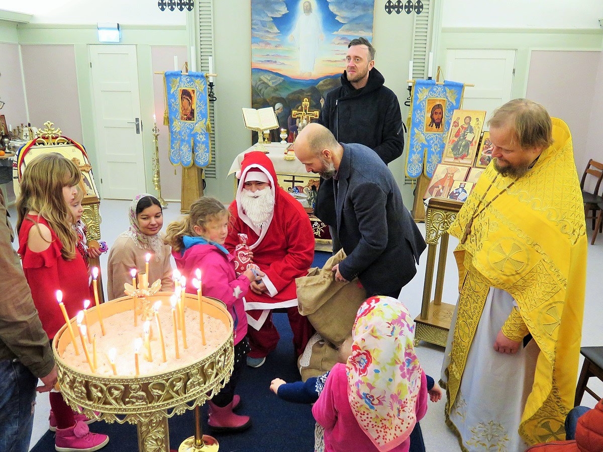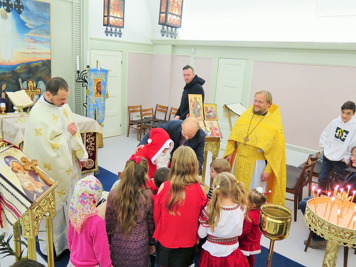 По окончании главной части в дни попразднства памяти святителя Николая Чудотворца всем приходским детям, по инициативе румынской общины, были вручены праздничные гостинцы: конфетки, елочные игрушки и т.д. (деньги на подарки детям собирались родителями в каждом приходе).