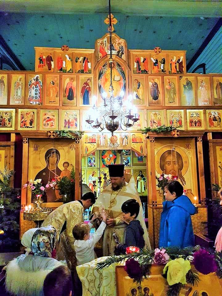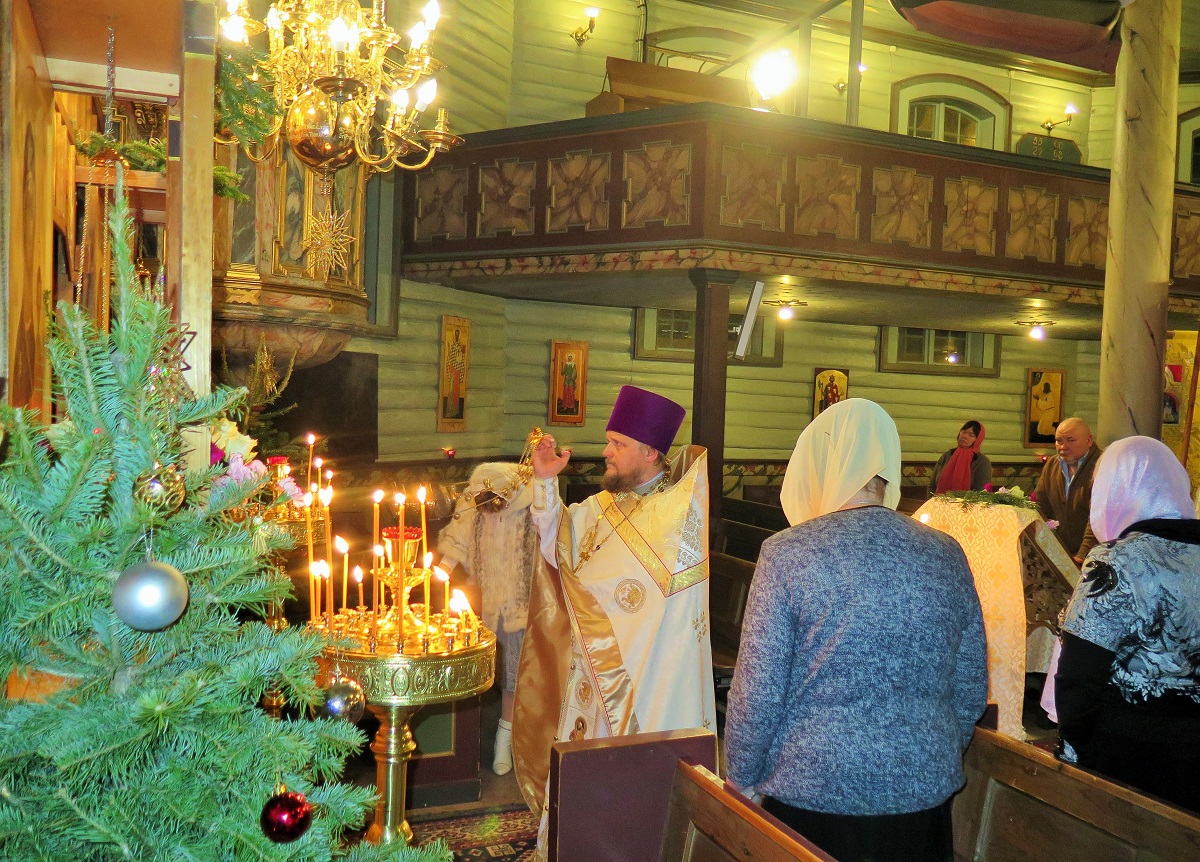 Ночное богослужение в Тронхейме с 6 на 7 января в благолепно украшенном храме, при полном иконостасе в окружении двух рождественских елок, прошло молитвенно и было исполнено светлой радости о Господе!