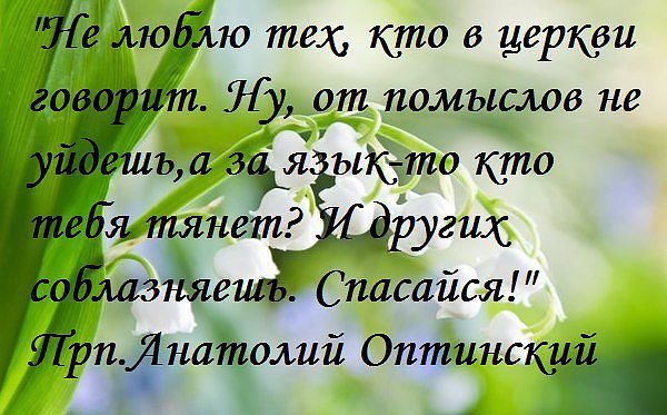 «По выходе из церкви не рассеивайтесь умом своим по суетным и бесполезным вещам, чтобы диавол, пришедши и нашедши вас занятыми такою суетою, не похитил тотчас из сердец ваших памятования слышанных вами в церкви душеполезных словес, как птицы расхищают семена пшеницы, трудолюбно посеянные на поле, но еще не сокрытые в землю, — и вы опять не остались пустыми от спасительного учения» (прп. Симеон Новый Богослов, 77, 192).