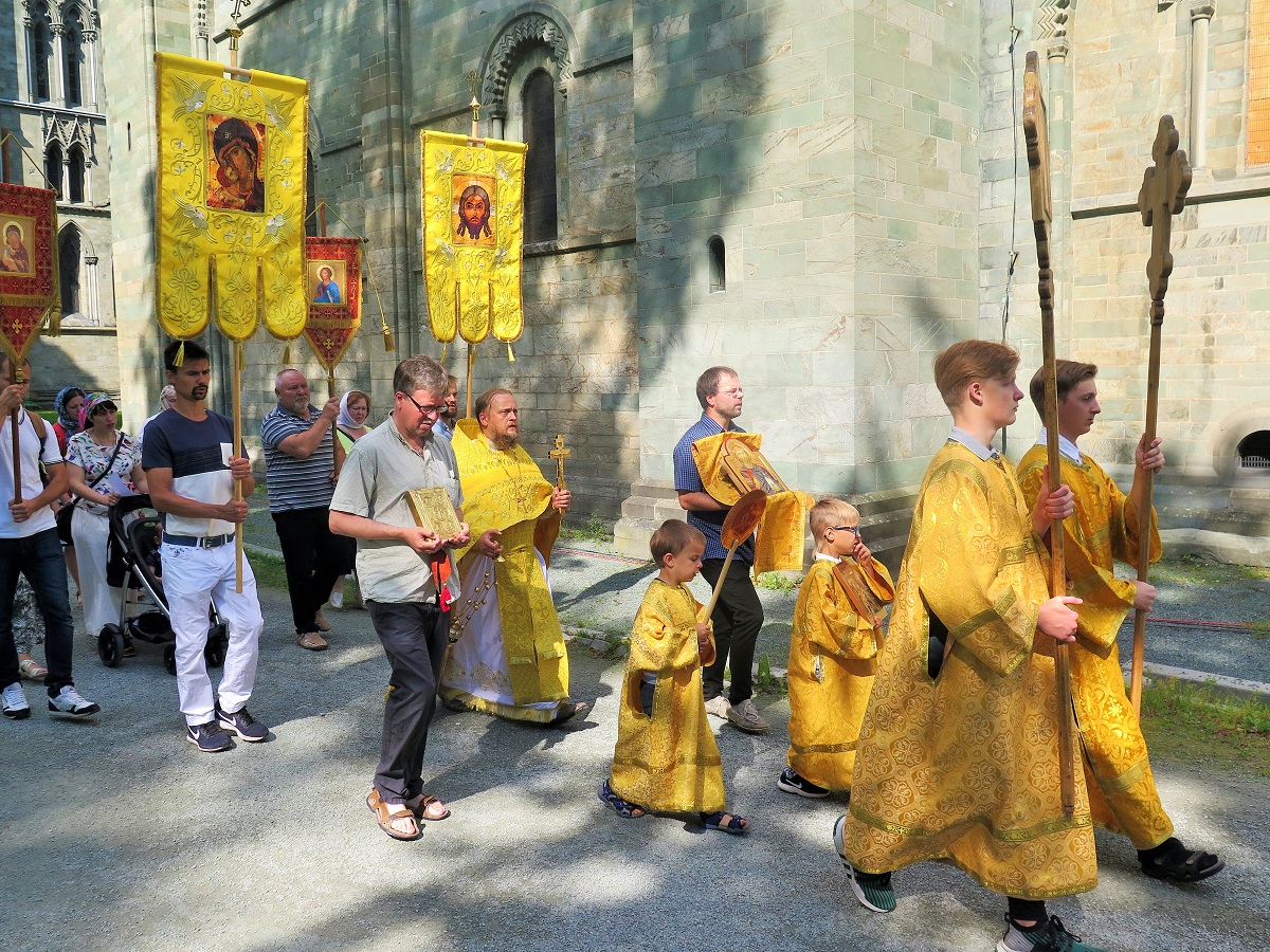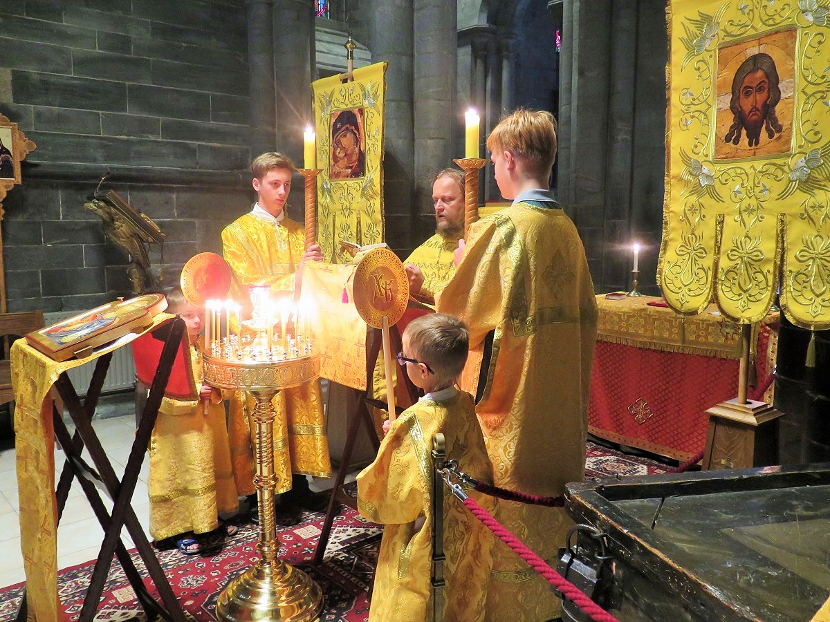 В древнем соборе Нидаросдомен — месте многовекового пребывания честных мощей святого короля — приходом святой Анны Новгородской была отслужена Божественная литургия.