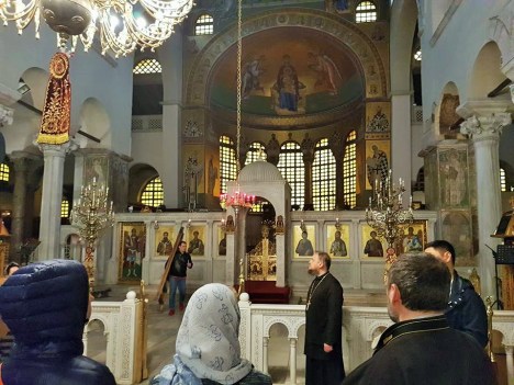 Паломническая поездка в апреле 2018 года объединенной группы из православных приходов в Норвегии и Швеции к святыням Греции. Первый день — Салоники. Древние храмы: Софийский собор и церковь-базилика великомученика Димитрия Солунского. Храмы во имя Пресв.Богородицы, св.Пантелеимона, свт.Григория Паламы, свв.Кирилла и Мефодия.