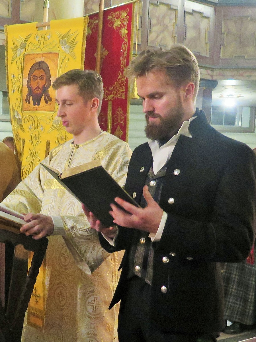 Церковно-славянский и норвежский язык богослужебных песнопений.
