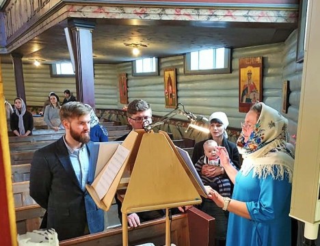 Молитвенное пение хора на церковно-славянском, греческом и норвежском языках.