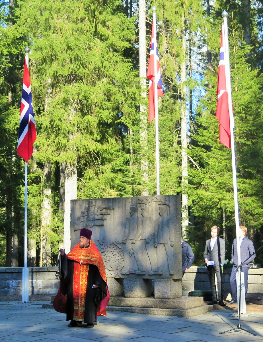 Заупокойное богослужение в рамках официальной церемонии у памятника павшим советским, югославским, норвежским и иным военнопленным.