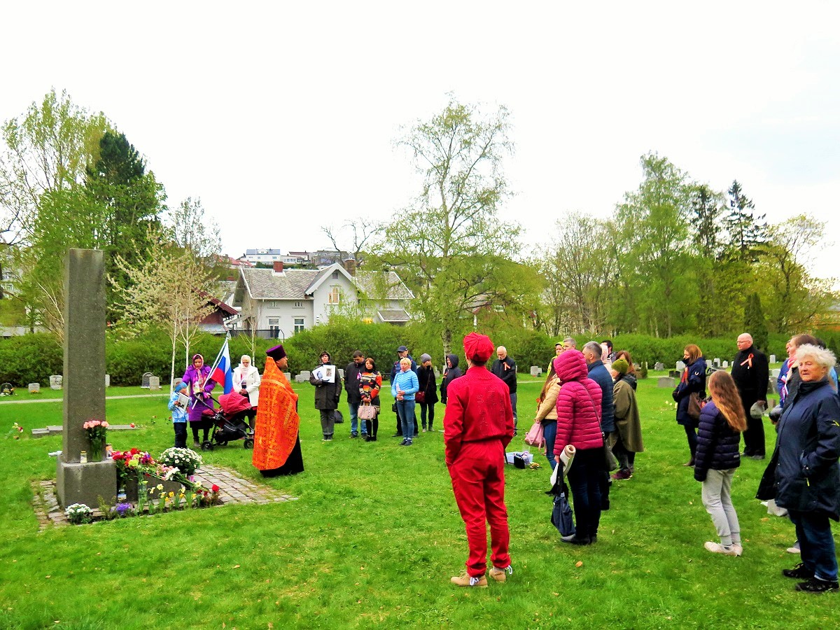 Христос воскресе! С Днем Победы! 9 мая в Тронхейме у братской могилы советских военнопленных на городском кладбище Ладемоен настоятелем русского православного прихода была, как и каждый год, отслужена заупокойная лития.