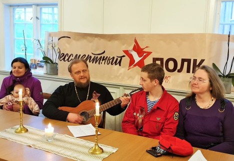 По окончании церемонии в приходском зале состоялся традиционный концерт песен военных лет под гитару.