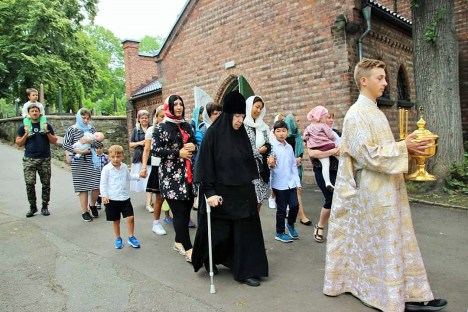 По окончании Божественной литургии прошел крестный ход у стен храма с преднесением иконы равноапостольной княгини Ольги.