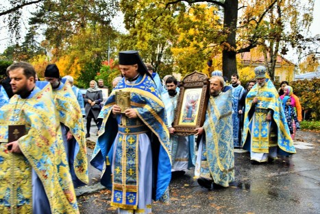 На праздничные торжества из поселка Вырица Гатчинской епархии настоятелем прихода Покрова Божией Матери протоиереем Георгием Преображенским были привезены для поклонения верующим великие святыни – епитрахиль и крест преподобного Серафима Вырицкого. За богослужением молитвенно пел хор Покровского прихода под управлением монахини Марии (Дыба). За божественной литургией в воскресный день и в день престольного праздника Покрова Божией Матери были произнесены заупокойные прошения о приснопамятном митрополите Ленинградском и Новгородском Никодиме (Ротове) в память о 90-летии его рождения. В конце литургии было совершено уставное малое освящение воды и крестный ход с освящением вод Финского залива. По возвращении в храм совершено праздничное славление с положенным по уставу многолетствованием.