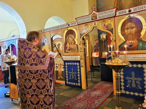 Божественную литургию в сослужении иерея Александра Волоханя, а также иерея Иринея Козеюка, возглавил настоятель столичного норвежского прихода архимандрит Климент (Хухтамяки).
