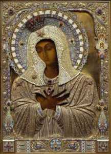 Икона Божией Матери «Умиление» — келейный образ преподобного Серафима Саровского. Икона была обретена преподобным Серафимом в саровских лесах. Он называл ее «Радостью всех радостей». Чудотворный образ находился в его монастырской келье, именно перед этой иконой святой отошел ко Господу 2 (14) января 1833 года.