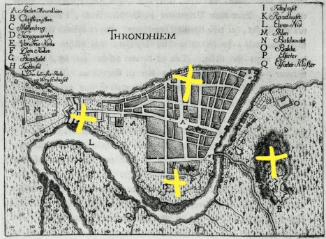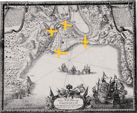 Первая точка — на востоке — городской форт Kristiansten Festning, расположенный на господствующей высоте.