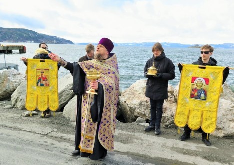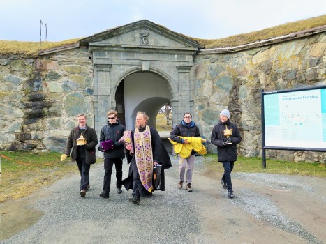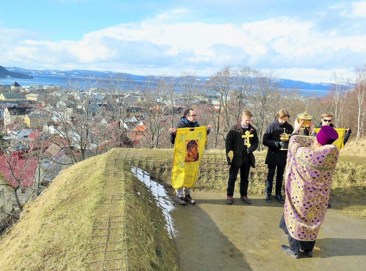 На каждом месте батюшкой совершалось осенение града, подступающих гор и прилегающего фьорда напрестольным водосвятным крестом с пением тропаря Кресту. Затем совершалось благословение окрестностей молитвенно возносимым ввысь ковчегом с частицей мощей святого короля Олава Харальдсона.