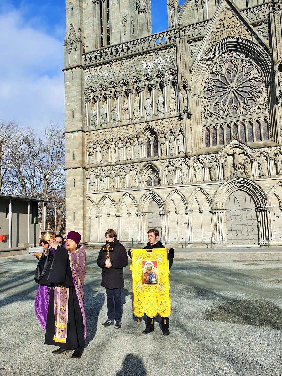 В продолжающиеся дни Великого поста настоятелем прихода святой княгини Анны Новгородской в Тронхейме был совершен крестный ход и объезд первой столицы Норвегии — древнего Нидароса — с иконой и частицей мощей святого короля Олафа Норвежского с вознесением молитв «о сохранении града сего и всех, живущих в нем» от угрозы нарастающей эпидемии.