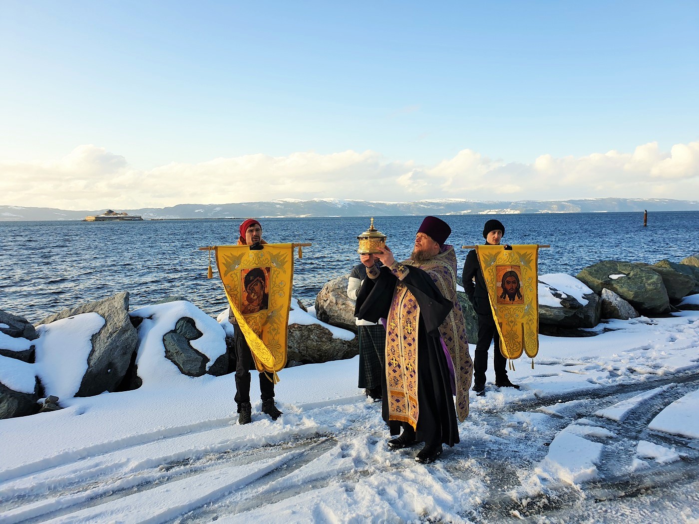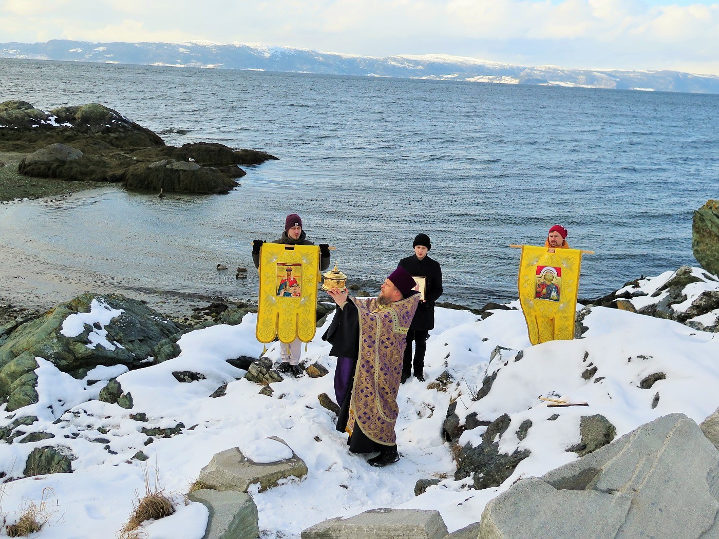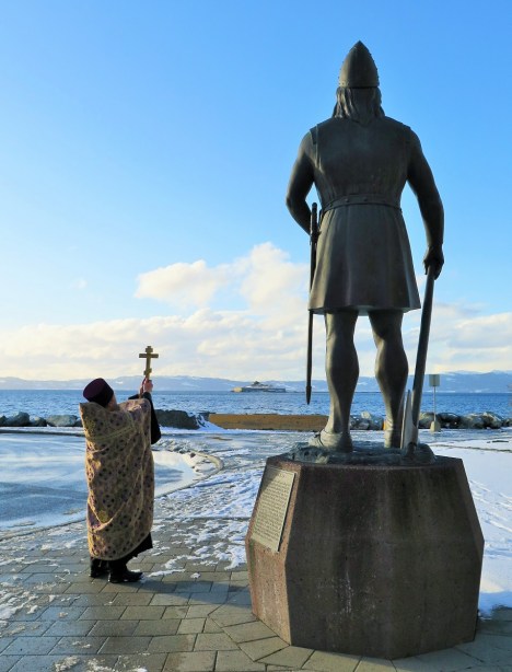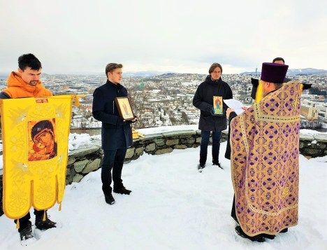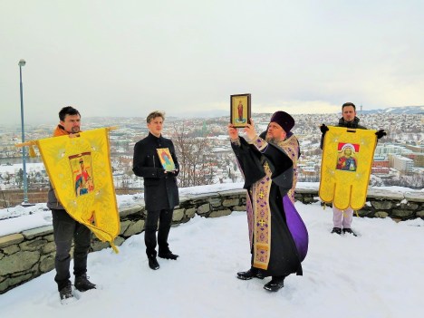 Кроме того, молебен пред иконами Богородицы и благословение Крестом морских вод было совершено в бухте Креста Korsvika на берегу Тронхеймского фьорда, а также неподалеку от памятника отважному первооткрывателю Америки викингу Лейфу Эриксону, отплывшему из Тронхейма по водам Норвежского моря в сторону неведомой земли.