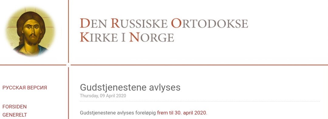 Av smittevernshensyn avlyses felles gudstjenester/deltakelse i gudstjenester i Hellige Olga menighet i Oslo og i Hellige Anna menighet i Trondheim frem til 27.(30.)april 2020.