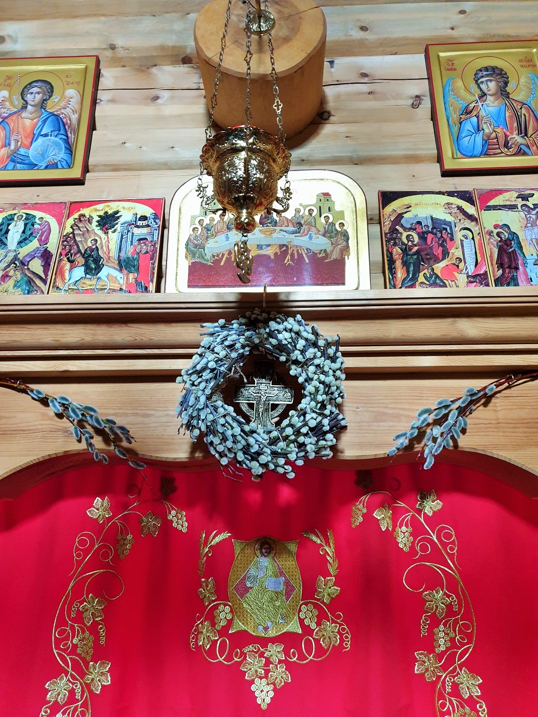 По окончании было совершено освящение ваий (верб), которое в этом году для мирян благословено проводить и самостоятельно в домашних условиях, как и освящение пасхальных куличей.
