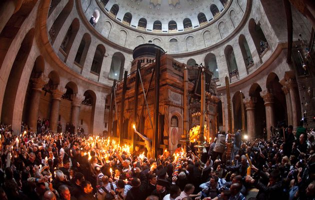 В храме Гроба Господня в Иерусалиме сошел благодатный огонь.