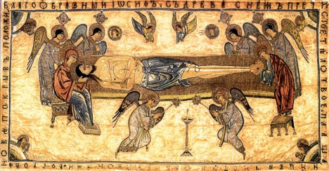 Тропари Великой Субботы:Благообразный Иосиф,/ с Древа снем Пречистое Тело Твое,/ плащаницею чистою обвив и вонями,// во гробе нове покрыв положи.