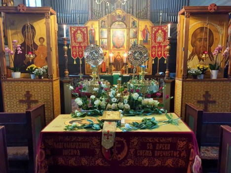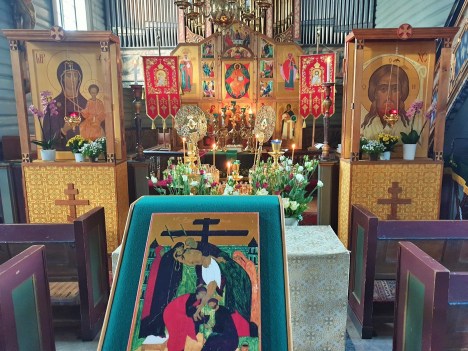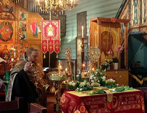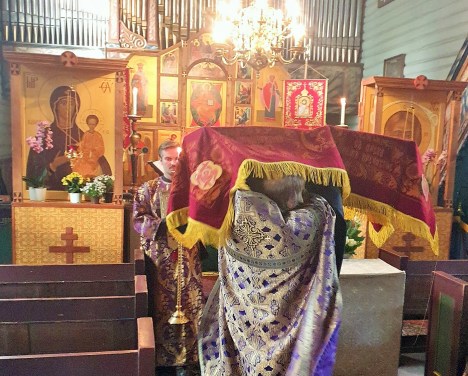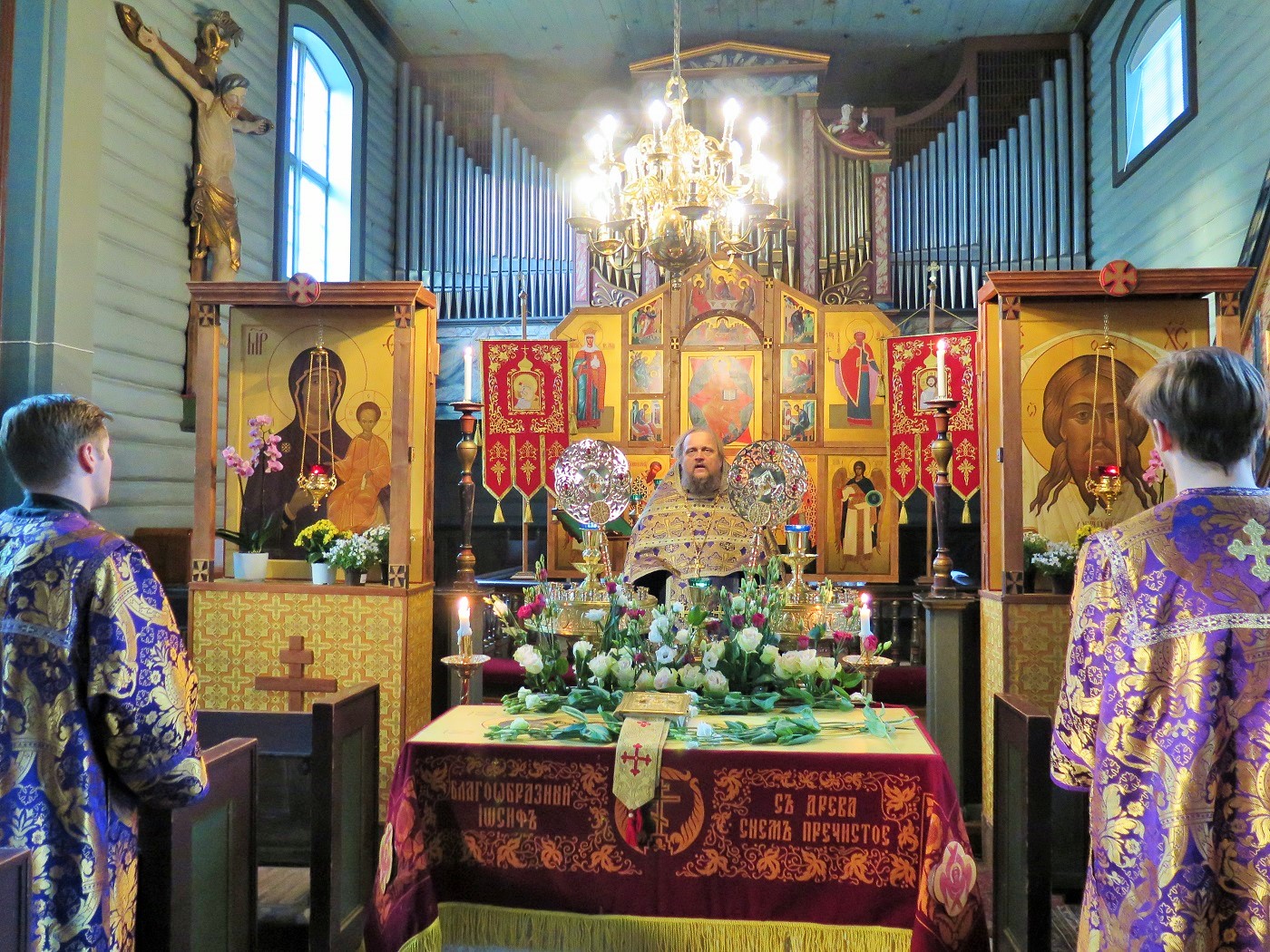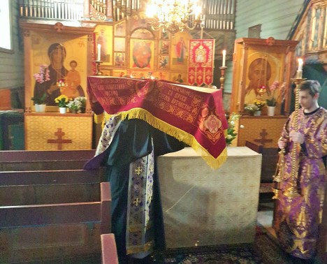 Содержай вся на крест вознесеся, и рыдает вся тварь, Того висящи нага висяща на древе, солнце лучи сокры и звезды отложиша свет, земля же со многим страхом поколебася, и море побеже и камение распадеся, гроби же мнози отверзошася, и телеса восташа святых мужей. Ад низу стенет, и иудее советуют оклеветати Христово воскресение. Жены же взывают: сия суббота есть преблагословенная, в нейже Христос уснув, воскреснет тридневен.Filed under: 1, Тренделаг, Тронхейм | Tagged: Великая Пятница, Великая Суббота, Плащаница, иерей Александр Волохань |
