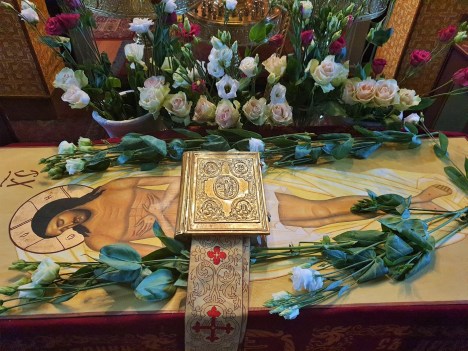 Бездну заключивый, мертв зрится, и смирною и плащаницею обвився, во гробе полагается яко смертный Безсмертный; жены же приидоша помазати Его миром, плачущия горько и вопиющия: сия суббота есть преблагословенная, в нейже Христос уснув воскреснет тридневен.