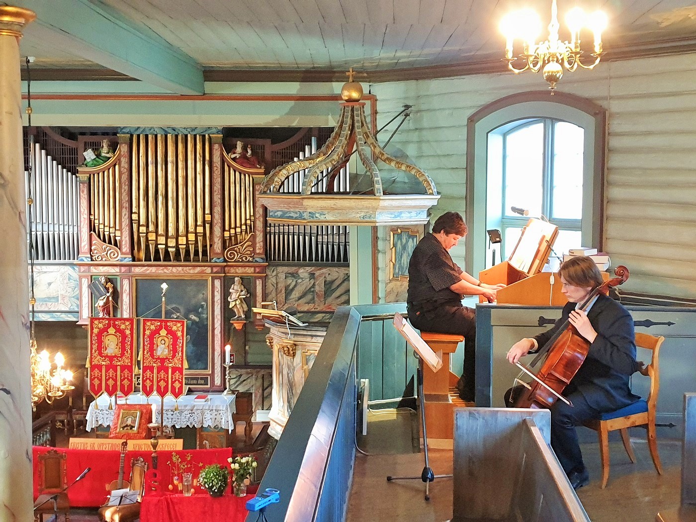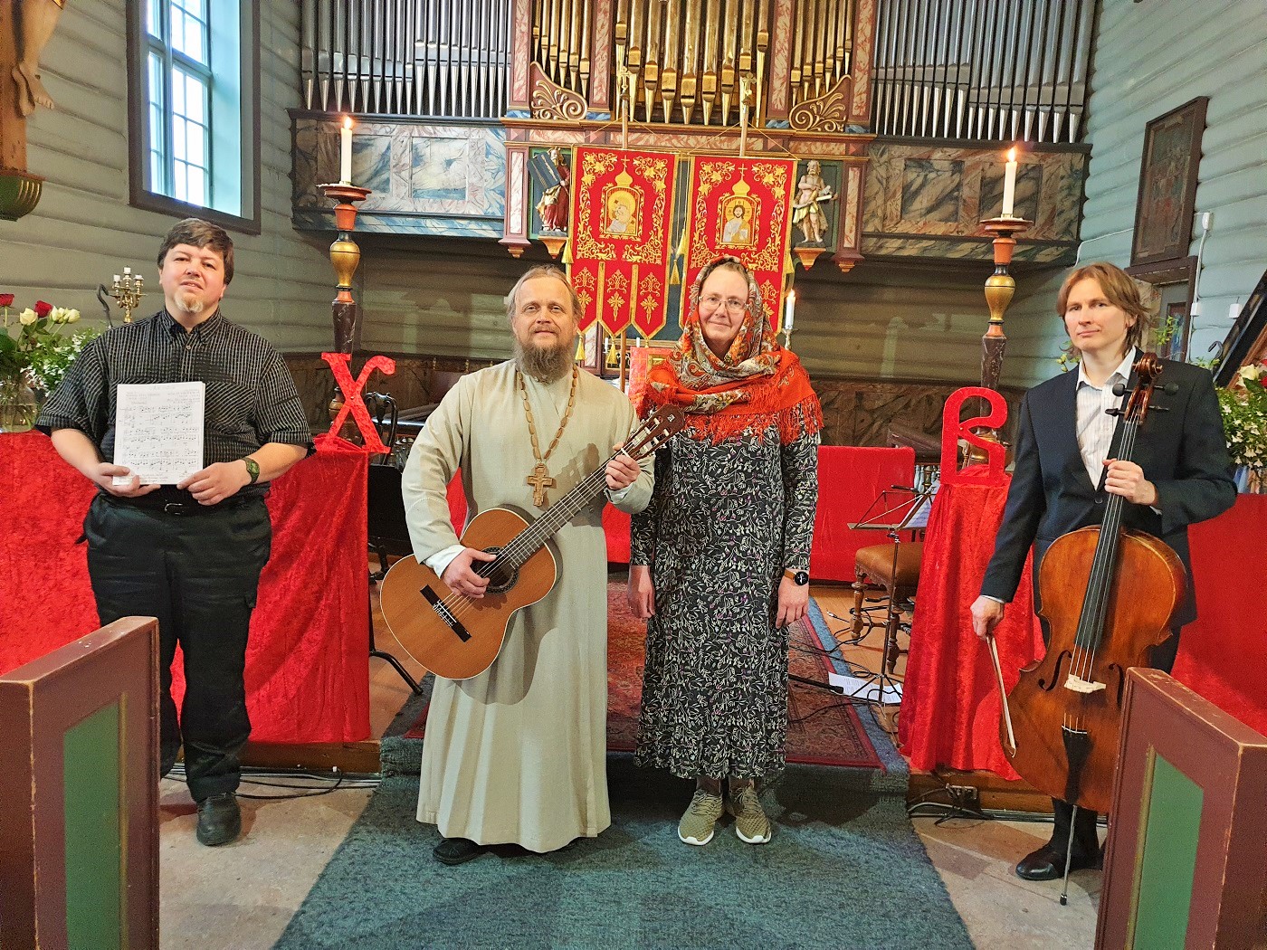 В приходском торжестве приняли участие профессиональные музыканты: Алексей Курбанов (фортепиано и орган) и Георгий Ильдейкин (виолончель), а также настоятель прихода иерей Александр Волохань (православные песнопения под гитару).