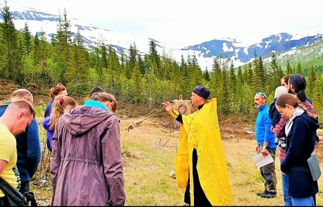 После общей молитвы под открытым небом у подножия гор все собравшиеся имели возможность общения со священником и друг с другом у костра за общей трапезой, а затем батюшка исполнил православные песни под гитару под дружный хор благодарных слушателей.