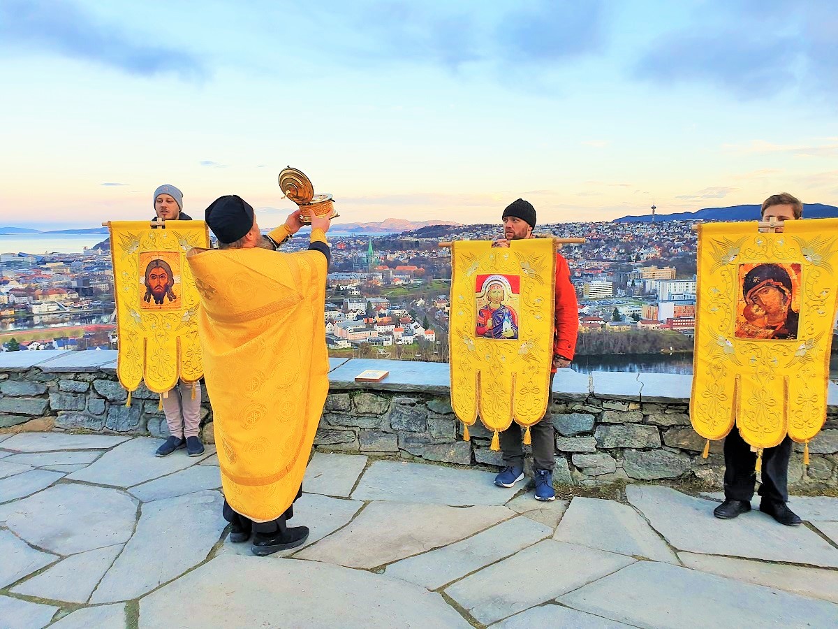 По аналогии с крестным ходом в начале апреля сего года молитвы на церковно-славянском и норвежском языках возносились молящимися на важных пунктах, образующих при своем соединении знак Животворящего Креста, основного и спасительного символа христианства, над всем городом — первой столицей Норвегии.