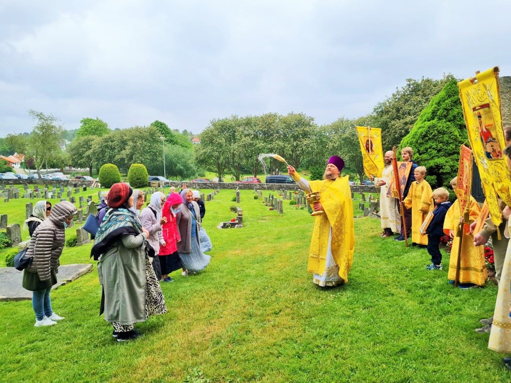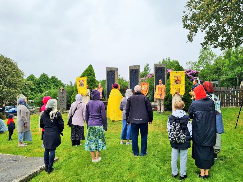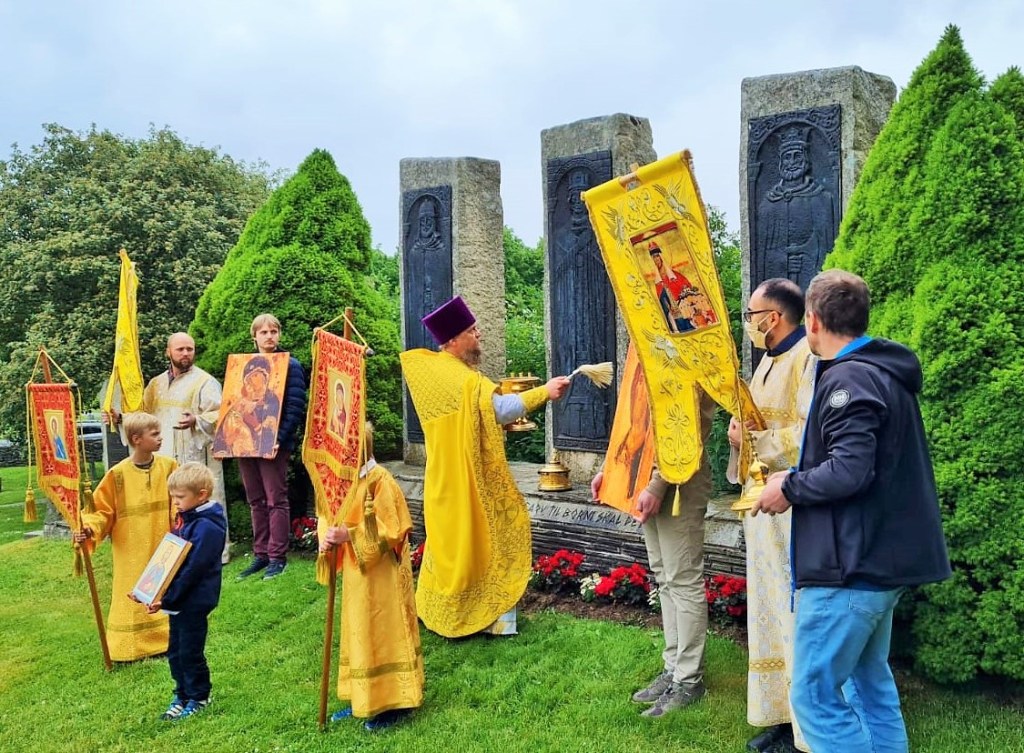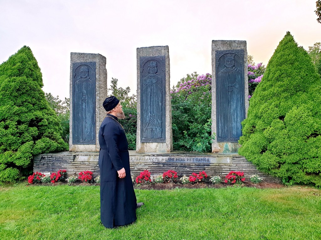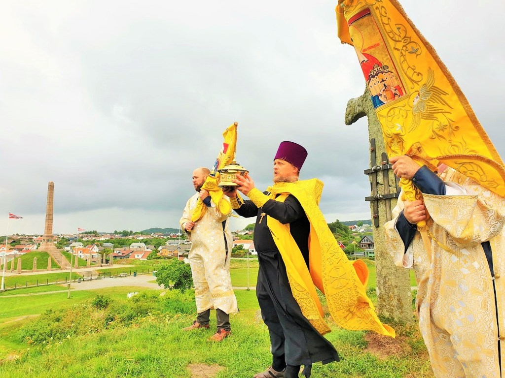 Отцом Александром был отслужен молебен с вознесением молитв крестителю Норвегии и освящено барельефное изображение (памятник) святого короля Олафа Норвежского — у входа в старинный храм Мостера.