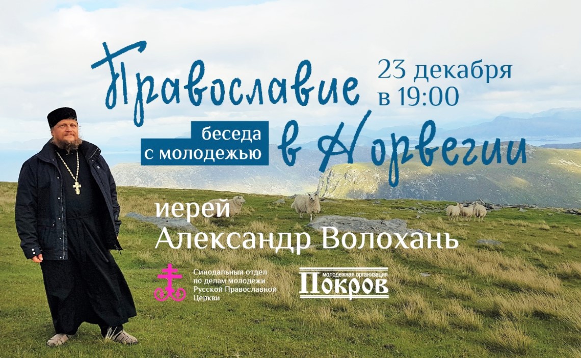 23 декабря 2020 года по благословению председателя Синодального отдела по делам молодежи Русской Православной Церкви епископа Истринского Серафима состоялась очередная встреча из цикла бесед «Единство во Христе». В этот раз темой беседы стало «Православие в Норвегии». С молодежью Эстонии, Германии, Беларуси, Литвы, Латвии, Китая и разных городов России общался священник Александр Волохань, настоятель прихода святой Анны Новгородской в Тронхейме. Читать далее →