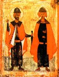 Днесь церковная разширяются недра, приемлющи богатство Божия благодати, веселятся русстии собори, видяще преславная чудеса, яже творите приходящим к вам верою, святии чудотворцы Борисе и Глебе,молите Христа Бога, да спасет души наша /Тропарь благоверных князей Бориса и Глеба/.